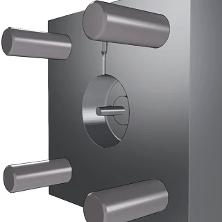 Magnet Retaining Features in the Mold The magnet must be securely restrained within the mold in all directions. If unrestrained, the magnet could shift or float out of position during injection. Pin Retainer: A through-hole in the magnet aligns with a pin in the mold, preventing lateral movement. Pinch Retainer: The magnet is held in place by side pins or arms. |